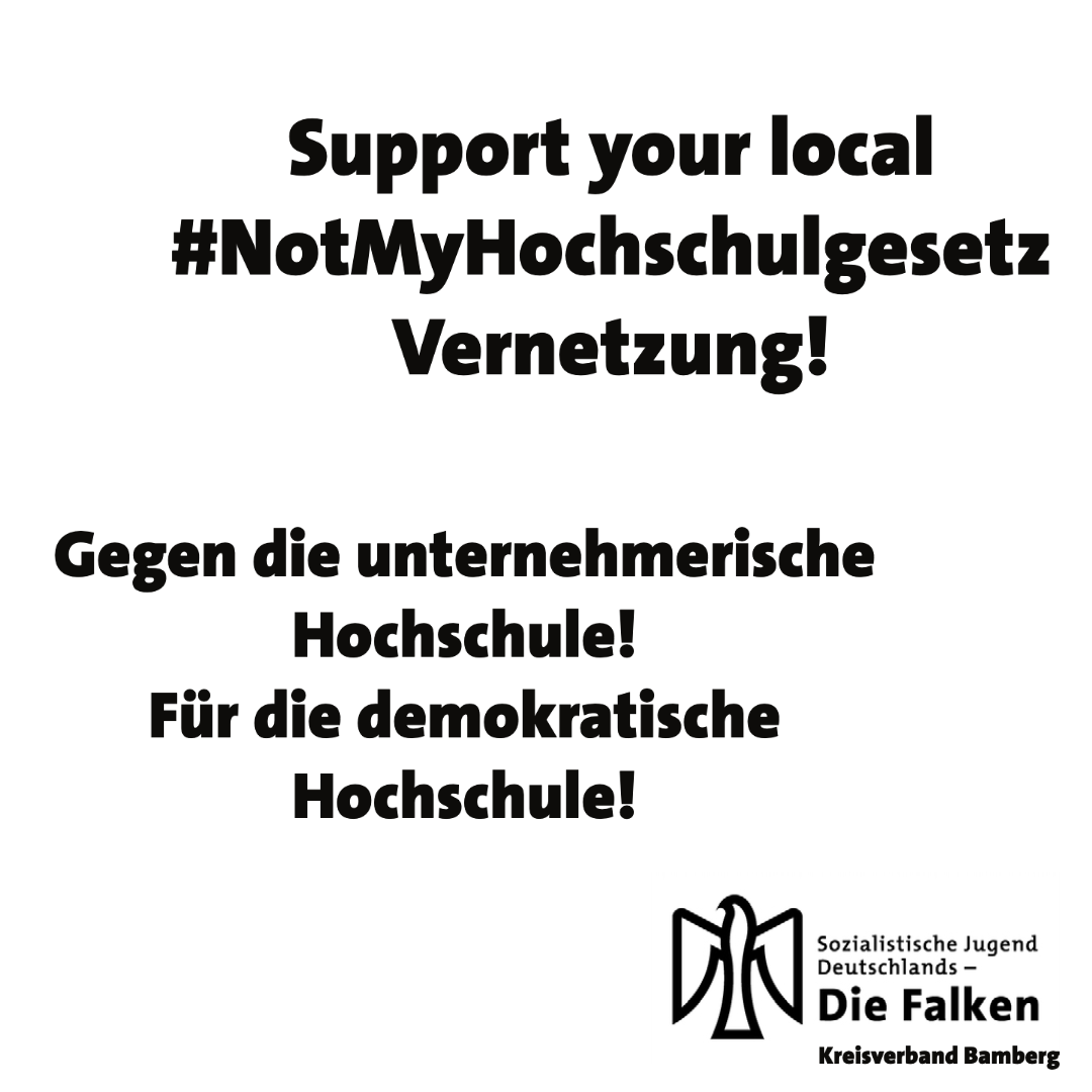 Und weil wir als Ziel doch irgendwie haben, eine Welt abseits der kapitalistischen Verwertungslogik zu schaffen, können wir nicht anders als uns mit den Protesten gegen die Novelle des Bayerischen Hochschulgesetzes zu solidarisieren. In Bamberg gibt es eine Vernetzung, ihr findet diese auf Instagram https://www.instagram.com/notmyhschg_bbg/